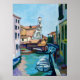 Este poster colorido apresenta uma pintura impressionista do mais antigo estaleiro de gondola no mundo 'Squero di San Trovaso' e do Fondamenta Nani, do Sestiere Dorsoduro, Veneza, Itália.