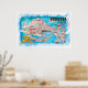 Poster Veneza Itália Mapa Ilustrado com Terras Canais Pri