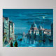 Veneza por Moonlight é uma cena tranquila com gondola num canal em Veneza noturna, Itália. As cores azul, turquesa e aqua criam uma cena calma e relaxante com sotaques vermelho-claro, dourado, amarelo e rosa. É perfeito para objetos pessoais e decorativos com um aspecto nostálgico.