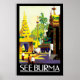 Vintage "Veja Burma", poster de viagens que promove o turismo ao que hoje é Myanmar.