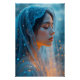 Um retrato irrealista de uma jovem tranquila com os olhos fechados, suas características iluminadas suavemente pela ascensão de luz cor de laranja quente de baixo e tons azuis legal em cascata de cima. Um véu azul brilhante, delicadamente bordado, enrola seu rosto, enquanto speck cintilantes vislumbram sua pele e deslizam no ar. Os sabores de vapor tecem graciosamente ao seu redor, acompanhados por um sutil brilho de membro por baixo. Colocada contra um fundo mágico, de foco suave, a imagem captura um equilíbrio etéreo de serenidade, mistério e beleza sonhadora.