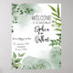 Esta é a maneira perfeita de dar as boas-vindas aos seus convidados ao seu casamento. Esta elegante mão desenhada verde deixa aquarela poster de convite para casamento é impressa em estoque de cartão premium e está pronta para enquadramento. O texto diz: "Bem-vindo à sua Recepção de casamento" em uma fonte elegante que complementa perfeitamente a design deste poster personalizado.