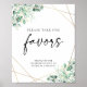 Greenery Eucalyptus Geométrico Casamento Favorece Sinal Poster. Apresenta folhas de aquarela eucalipto e uma estrutura geométrica dourada.