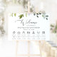 Adicione um toque pessoal à sua celebração de casamento com estes itens de na moda e festa memoráveis! Design apresenta folhas de eucalipto e verde em fundo branco.
