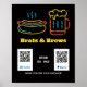 Indicador de poster de opção de pagamento de código de QR moderno e na moda para a cabine do evento, caminhão de comida móvel ou suporte de concessão, com um cachorro quente neon e caneca de cerveja em fundo preto. Adicione seu código qr personalizado e detalhes da empresa.