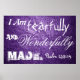 Feita sobre um fundo de couro roxo, esta poster é inspirada no verso bíblia Psalm 139:14 "Eu sou assustada e maravilhosamente feita."