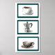 Esta bela poster mostra uma fotografia de um pote de café no estilo italiano e duas fotos diferentes da xícara de café. Qualquer amante de café ou chá adoraria isso para uma cozinha ou área sentada.