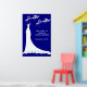 Vestido de casamento branco elegante e primavera floresce em um Poster azul marinho de fundo