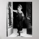 Foto de moda Vintage de uma mulher vestindo um vestido flapper, fazer grande entrada. Detalhe da arquitetura do excelente nas portas.