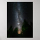 Atrofotografia de um atordoante caminho leitoso acima da floresta de picos.