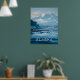 Capture a beleza da Última Fronteira com este poster de viagens do Alasca moderno. Apresentando um design ousado com baleias e um navio de cruzeiro, este trabalho de arte traz uma reviravolta nova para impressões clássicos de viagem. Perfeito por adicionar um toque aventureiro e inspirado no desejo à sua casa, escritório ou parede de galeria.