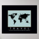 Um mapa gráfico do mundo com um quadro negro e um texto viagem inspiracional: "Uma jornada de mil milhas deve começar com um passo solteiro", do filósofo Lao Tzu