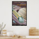 Viagens vintage de poster a Saturno em um trem espacial de meia-noite.