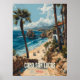 Transporte-se para as praias de Cabo San Lucas, beijadas ao sol, com este poster de viagens retrô. O icônico "El Arco" enquadra o céu tropical, águas verdes esmeraldas e penhascos de arenito de calcário.