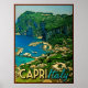 A bela cidade litorânea de Capris Itália parece incrível em esplendor azul e verde com esta viagens vintage moderna. O oceano azul contra penhascos e o céu é simplesmente lindo.