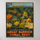 EXCELENTE BARRIER CORAL REEF Vintage 1930s, Poster de viagens litógrafo "The Marine Wonders of the Excelente Barrier Coral Reef" Gabinete Turístico do Governo Queensland. Design pintado com cenas exóticas de recife de coral-d'água com pessoas em um barco de pesca, 1933, Percival Artista Albert Trompf Impresso por Frederick Phillips. "Percival Albert (Percy) Trompf (1902-1964), artista comercial, nascer em 30 de maio de 1902 em Beaufort, Victoria. Austrália