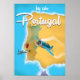 Poster de viagens vintage de Portugal. Poster de viagens de desenho animado de Portugal. Poster de viagens aéreo de Portugal.