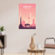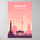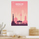 Adicione um pouco de talento à sua decoração com esta poster cor-de-rosa com uma ilustração retrógrada do horizonte alemão Berlim, incluindo a Porta de Brandeburgo Alemã!