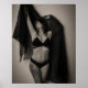 Imagem negra e branca de um modelo sexy sentindo as vibrações ao seu redor.
