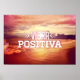 Vibra Positiva - texto vibe espanhol positivo, fundo de praia de pôr do sol desfocado.