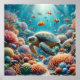 Uma cena submarina cheia de coral colorido, marisco ocupado e uma tartaruga marinha gentil.