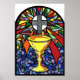 Esta imagem em forma de gaze e tinta foi criada para parecer uma janela de vidro manchado. O design personalizado é brilhante e bonito. A poster faz uma bela declaração cristã em qualquer sala ou sala da igreja. Pares lindamente com a pintura de vidro entrançado.
