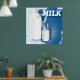 Um copo de leite e uma caixa de leite. Esta design parece realmente eficaz nestes Poster
