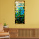 Uma janela de vidro manchado de art nouveau era de estrelas-do-mar sob o mar por tiffany. Em cores azuis, lacrimejantes, douradas e marrons. Um design elegante.