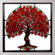 Janela colorida de vitral apresentando uma árvore artística com folhas vermelhas vivas, mostrando habilidade artesanal intrincada e elegância, perfeita para temas de natureza, beleza e criatividade artística.