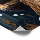 Esta pintura encantadora apresenta um guaxinim com pele esbranquiçada e esbranquiçada detalhada, e uma expressão curiosa, tocada em um toco de árvore coberto de neve. O fundo é uma parede de madeira rústica com flocos de neve a cair suavemente. O texto "Bonito mas selvagem" é exibido com ousadia em uma fonte branca estilizada na parte inferior do trabalho de arte.