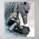 Uma jovem dama guerreira senta-se no topo do penhasco, com o dragão ao lado dela. Este foi o primeiro da minha série "Watcher". Foi desenhado com lápis Primsacolor em papel Canson MiTentes em 1986.