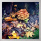 Um aglomerado único de cogumelos na base de uma árvore. Cores de queda enchem esta foto com as folhas no chão. Os cogumelos brilhantes se parecem com sua própria vila. Foto: outubro de 2015.