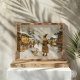 Esta maravilhosa pintura a óleo retrata um charmoso mercado de inverno cheio de alegria de férias. As luzes de cordas quentes iluminam as bancas cobertas de neve, onde os compradores navegam em produtos assados e doces festivos. No primeiro plano, uma figura acolhedora em um casaco forrado de pele é unida por dois patos brincalhões, acrescentando um toque caprichoso à cena da terra maravilhosa do inverno. Os pincelados macios, tons silenciados e flocos de neve suavemente caindo capturam a magia da estação, evocando um espírito nostálgico de feriado perfeito para qualquer espaço festivo.