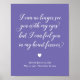 Este belo letreiro memorial de vinca roxo e branco é uma forma adequada de lembrar e homenagear aquele que partiu, mas você sempre irá amar e lembrar. Ele apresenta o texto "Não posso mais vê-lo com meus olhos, mas posso senti-lo no meu coração para sempre" com um coração e seu texto na parte inferior.