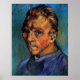 Autorretrato sem barba de Vincent van Gogh. Esta pintura pode ser a última pintura que van Gogh criou antes de se matar. Van Gogh criou muitos autorretratos durante sua vida, foi um prolífico autoretratista, que se pintou trinta e sete vezes entre 1886 e 1889. Em todos esses autorretratos se choca que o olhar do pintor raramente nos é dirigido; mesmo quando é um olhar fixo, ele parece olhar para outro lugar. Essas pinturas variam de intensidade e cor e algumas retratam o artista com barba, algumas sem barba, algumas com bandagens, representando o episódio em que ele cortou uma de suas orelhas.