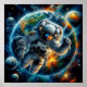 Um astronauta solitário flutua no espaço contra o nítido pano de fundo da Terra e numerosos corpos celestes. Cores vibrantes e detalhes intrincados capturam a vastidão e mistério do universo.
