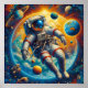 Um astronauta solitário flutua no espaço contra o nítido pano de fundo da Terra e numerosos corpos celestes. Cores vibrantes e detalhes intrincados capturam a vastidão e mistério do universo.