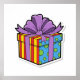 Um gráfico de alta qualidade de uma caixa de presentes de cor brilhante com um grande arco no topo, perfeito para celebrar aniversários e outras ocasiões especiais.