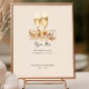 Sinal de bar aberto para a sua recepção de casamento. A placa de bar tem uma paleta de cor neutra e uma ilustração aquosa de vidros e flores de vinho. Tipografia manuscrita e opção para editar o texto para complementar o estilo do casamento. Personalize a placa com seus nomes e data de casamento para um toque verdadeiramente especial.