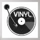 Ilustração vetorial, a preto e branco, de um LP de vinilo, gravado num leitor de discos ou de mesa-redonda. Um design para pessoas que adoram o formato de gravação vinil, D'j.s e outros fãs de música.