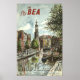 Poster Vintage 1956 Fly BEA Amsterdam UK Viagem