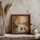 Esta pintura ao estilo da safra captura lindamente uma cena serena de outono por um riacho suave, onde dois patos deslizam graciosamente pela água. Os tons quentes e acastanhados da pintura evocam um senso de calma e nostalgia, com os ricos castanhos, dourados e pistas de vermelho e laranja refletindo o ar estaladiço do outono. As folhas caídas na superfície da água e a textura macia das pinceladas dão vida à atmosfera pacífica, fazer esta trabalho de arte um reflexo perfeito da tranquilidade encontrada na natureza durante a estação do outono.