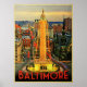 Uma bela cena de férias no início da noite em Baltimore, Maryland no Monumento George Washington com luzes de Natal como adorno.