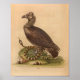 Vintage 1776, ilustração de aves de Gleanings of Natural History. Abutre no chão segurando um cobra.