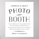 Planejar uma cabine fotográfica na sua recepção de casamento? Coloque este sinal junto ao seu adereço para que os hóspedes saibam o que fazer. O moderno design de vintage em preto e branco apresenta "cabine fotográfica" em caracteres de blocos estilo vintage com algumas linhas de rimas para direcionar seus convidados. Personalize com seus nomes e adicione uma hashtag de casamento opcional para que os convidados compartilhem nas redes sociais.