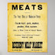 Este cartaz de carne compre de carniceiro de aparência antiga foi criado de um anúncio que apareceu em impressão em 1912. Ele é dimensionado a 8 pol por 10 pol e é visto aqui em papel de poster antigo. Sugere-se que você faça upgrade para o arquivo de papel mate, para que ele seja enquadrado e possa ser redimensionado para 16 x 20 maiores. Este impressão seria um excelente adicional a qualquer mercearia, açougueiro ou compro de carne que buscasse um sentimento no início dos anos 1900.