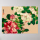 Poster Vintage Camellias Japonesas. Rosa Profundo no bege