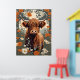 Cute Vintage Highland Cow Poster, uma maravilhosa fusão de estética vintage e prazer artístico. Esta poster apresenta uma ilustração adorável, inspirada na safra, de uma vaca Highland, acrescentando um toque de beleza rústica e capricho ao seu espaço vivo.