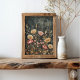 Essa pintura encantadora captura a essência de uma tapeçaria floral vintage, com flores delicadas em matizes macios e mudos colocados sobre fundo escuro e profundo. A composição apresenta um conjunto de flores silvestres, com flores cor-de-rosa, pêssego e ouro entremeadas com gramíneas e folhagem intrincadas. As flores parecem brilhar sutilmente, seus tons gentis lindamente contrastando com o cenário humorado e texturizado que aponta numa noite estrelada. O efeito geral é nostálgico e eterno, evocando a elegância do wallpaper da era vitoriana com uma reviravolta moderna. Esta trabalho de arte faria uma declaração impressionante em qualquer espaço, trazendo um toque de refinada beleza natural para as paredes.
