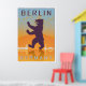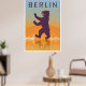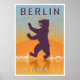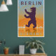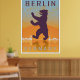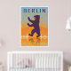 Poster vintage de Berlim em fundo de cor laranja e azul, com linha branca
